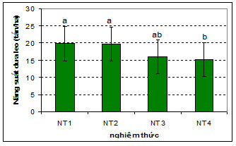 Hình 1. Năng suất dưa leo an toàn trồng trên đất phù sa Thốt Nốt, TP Cần Thơ